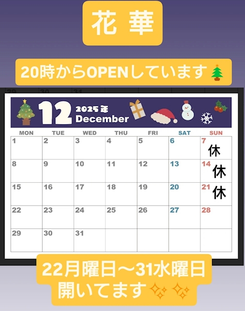 本日 花華 お休みです😋 明日から 12月とか早すぎでしょ🤯 来週も 花華を よろしく お願い致します🥳💃🤩